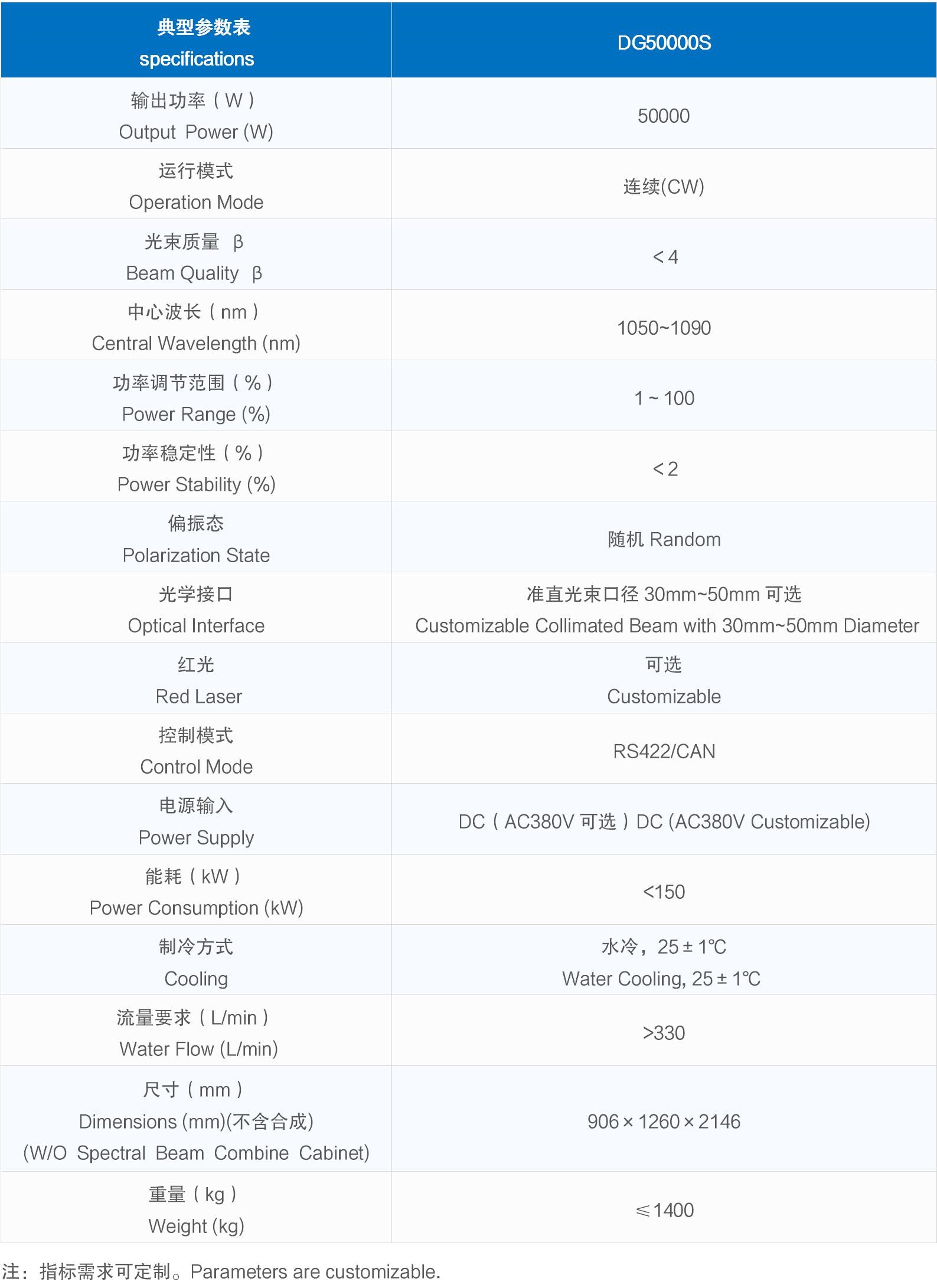 可實(shí)現(xiàn)50kW激光功率輸出,更高功率可定制。