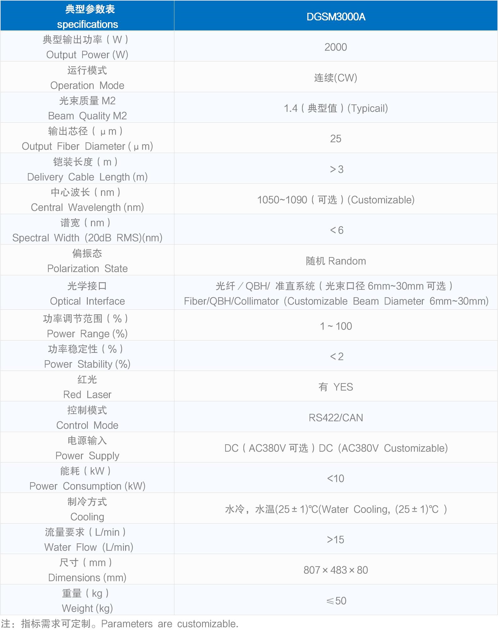 注:指標需求可定制。Parameters are customizable.